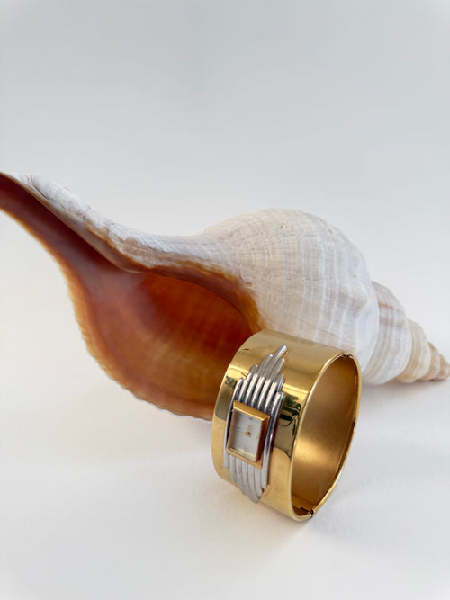 GOLD AND SWAROVSKI CRYSTAL WRIST WATCH